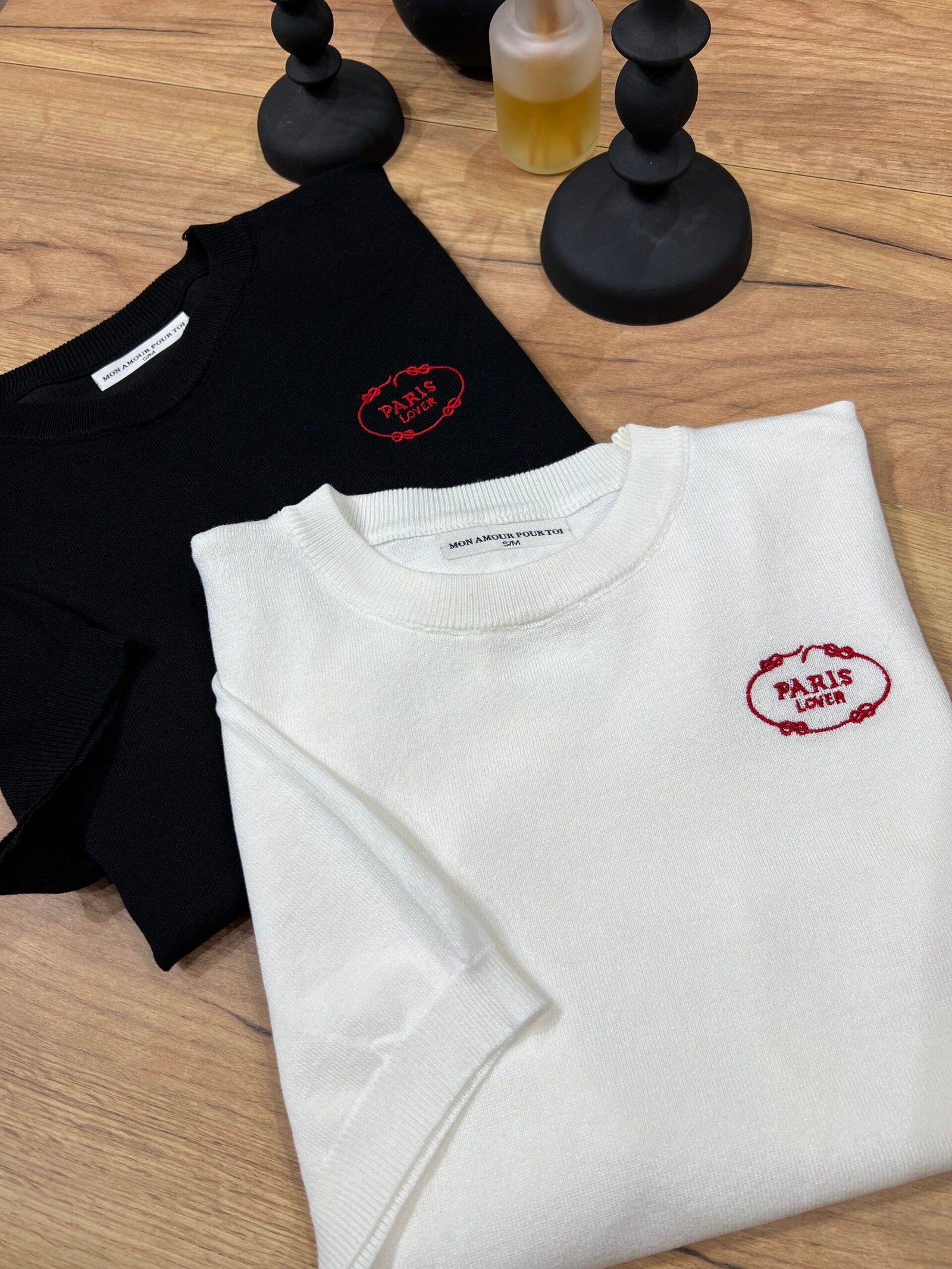 Bluzë T-shirt me prerje slim dhe detaj minimalist “Paris Lover” në pjesën e gjoksit. Material i butë dhe elastik që përshtatet bukur në trup dhe ofron rehati gjatë gjithë ditës. Ideale për kombinime casual me xhinse, funde apo pantallona sportive.