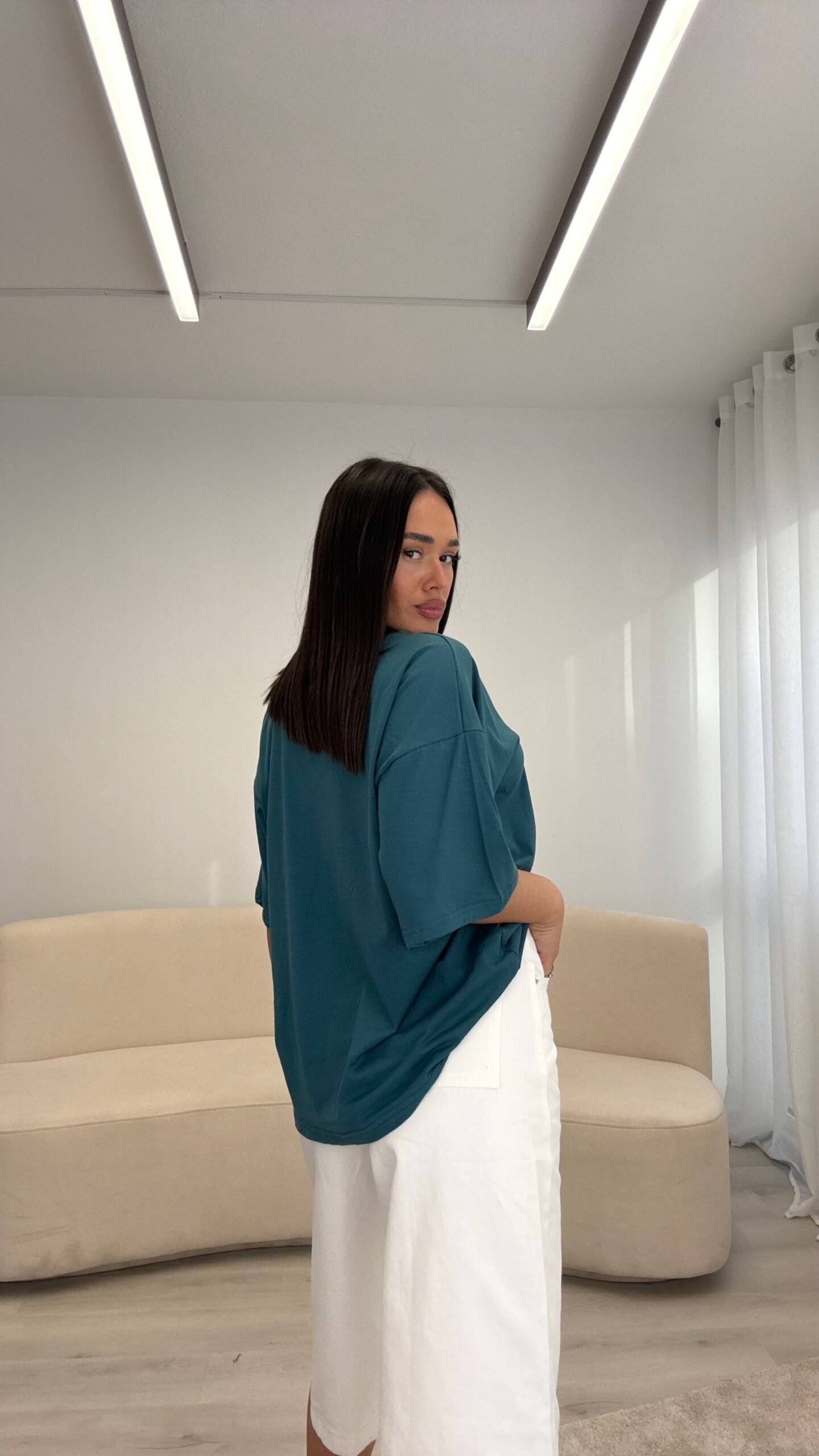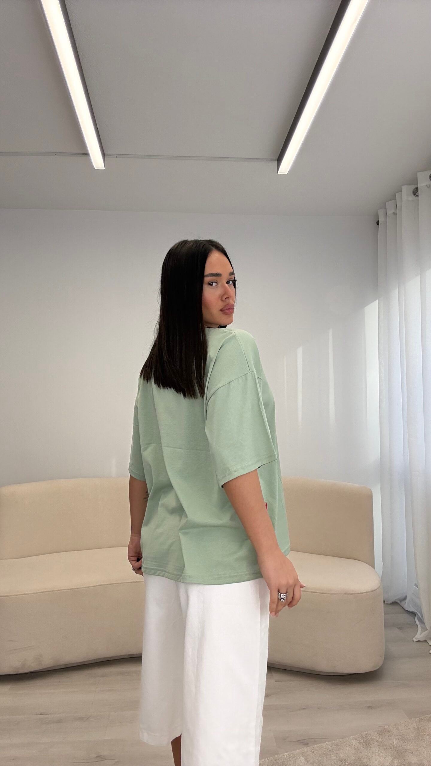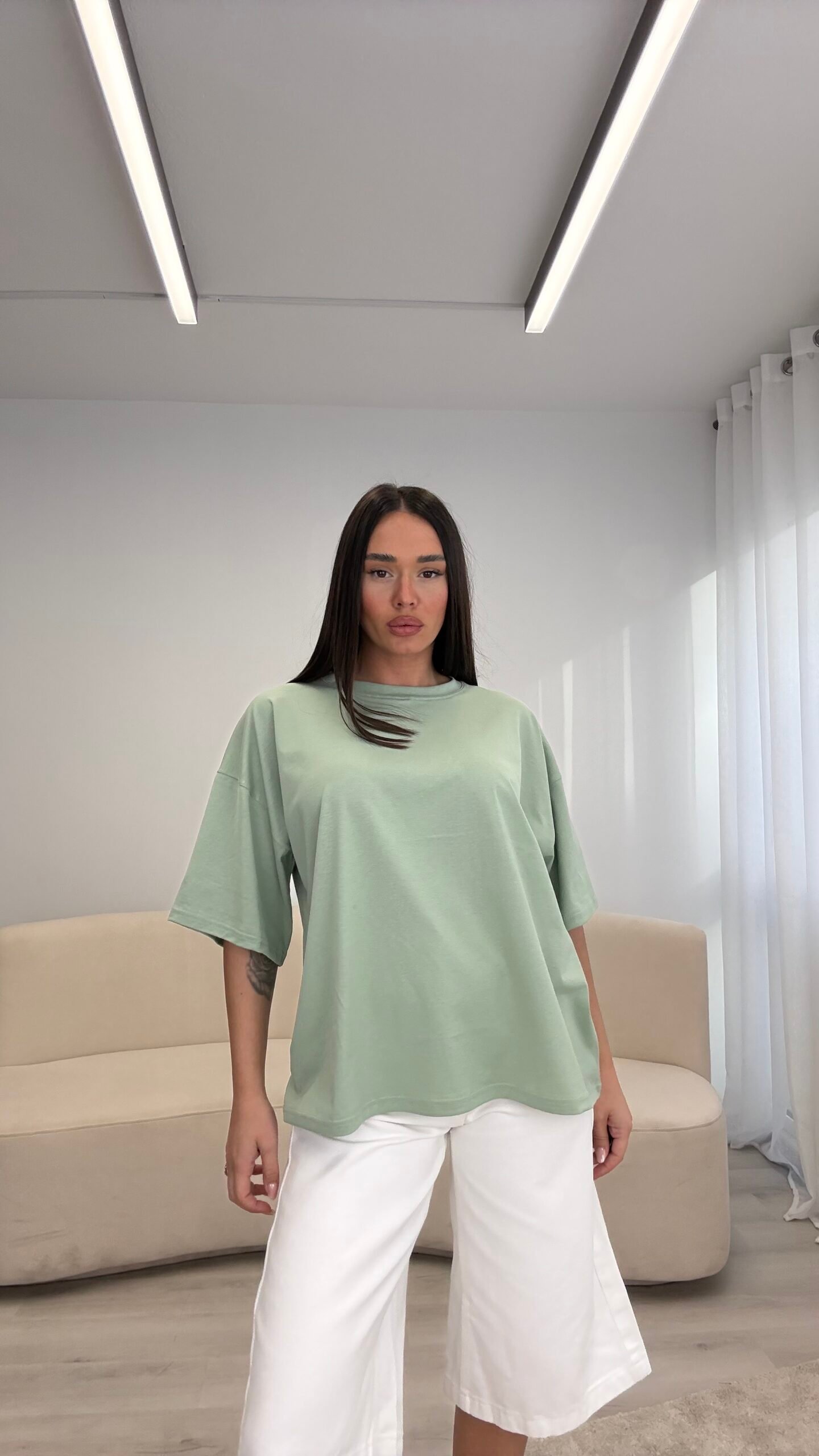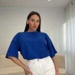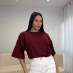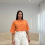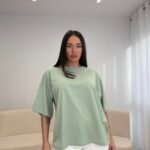 T-shirt me prerje oversize dhe formë të lirshme që krijon një look modern dhe effortless. Material i butë dhe komod për përdorim të përditshëm, i lehtë për t’u kombinuar nga casual deri te outfit-et më të kuruara.
