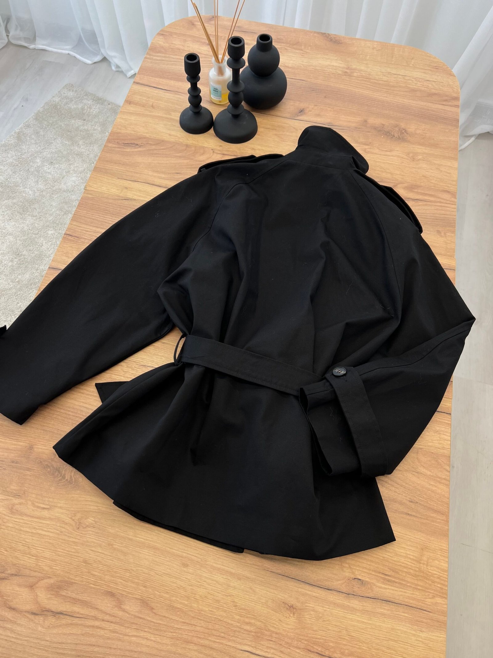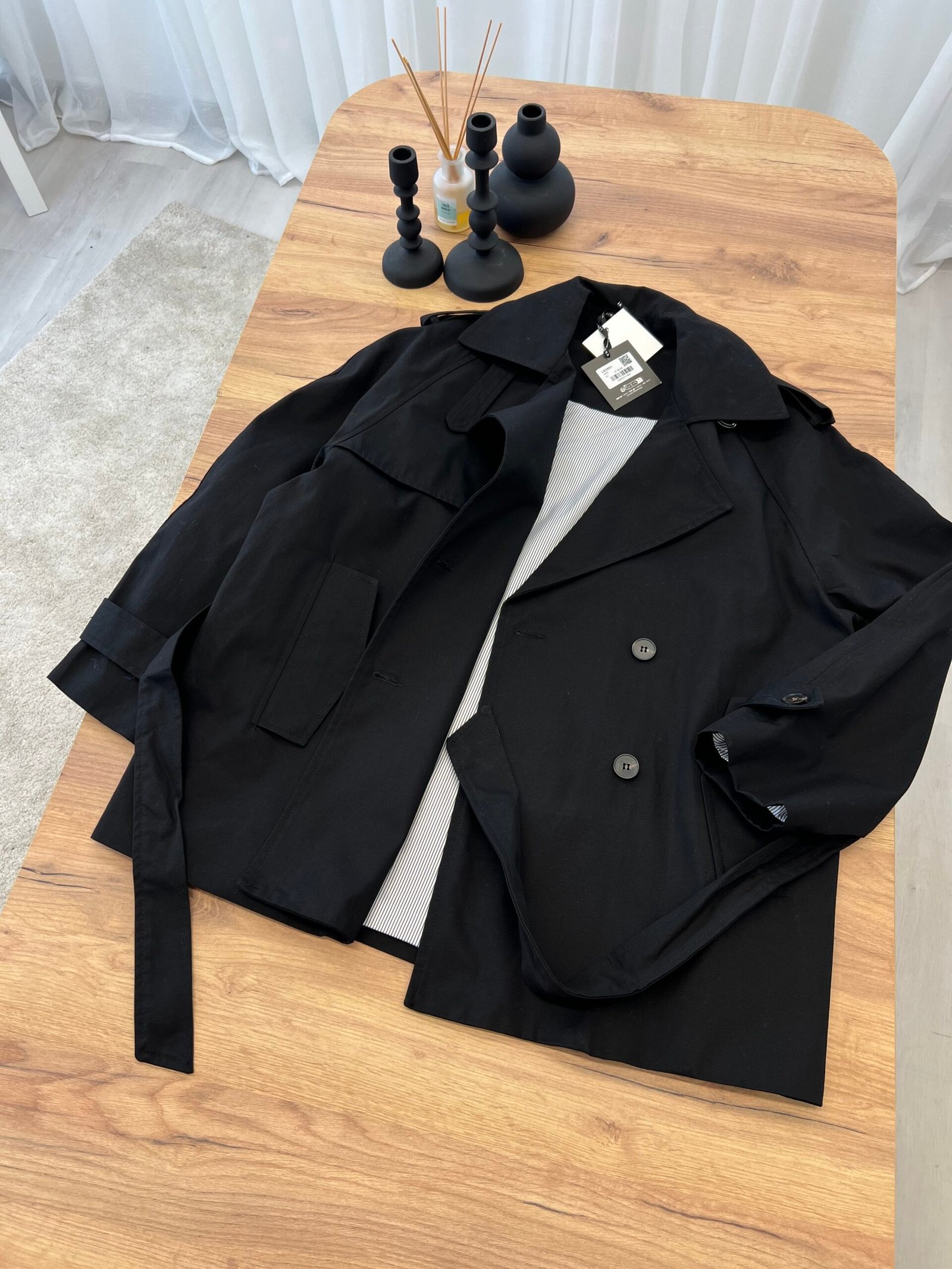 Trench coat me prerje klasike dhe rrip në bel që thekson siluetën. Dizajn elegant me jakë të strukturuar dhe detaje të pastra për një pamje të rafinuar. Material cilësor dhe i rehatshëm, ideal për sezonet e ndërmjetme dhe kombinime smart-casual. Një pjesë esenciale për një garderobë stil dhe të përjetshme.