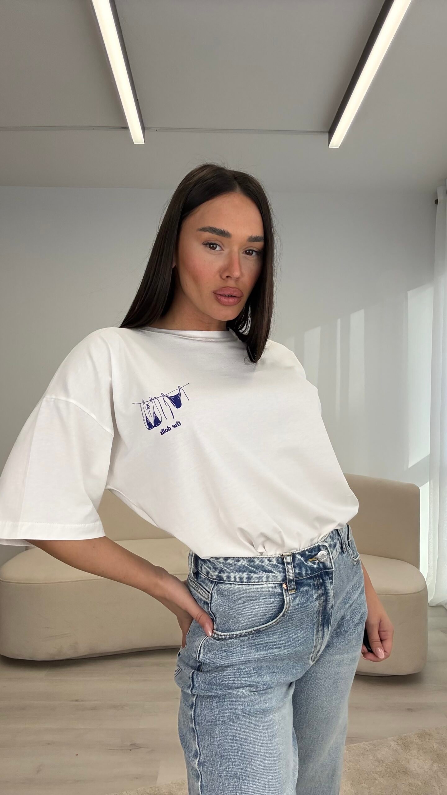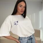 T-shirt me prerje oversize dhe material pambuku, që ofron komoditet maksimal dhe një look të pastër, effortless. Detaji minimal me print të vogël në pjesën e përparme i jep karakter pa e ngarkuar veshjen.