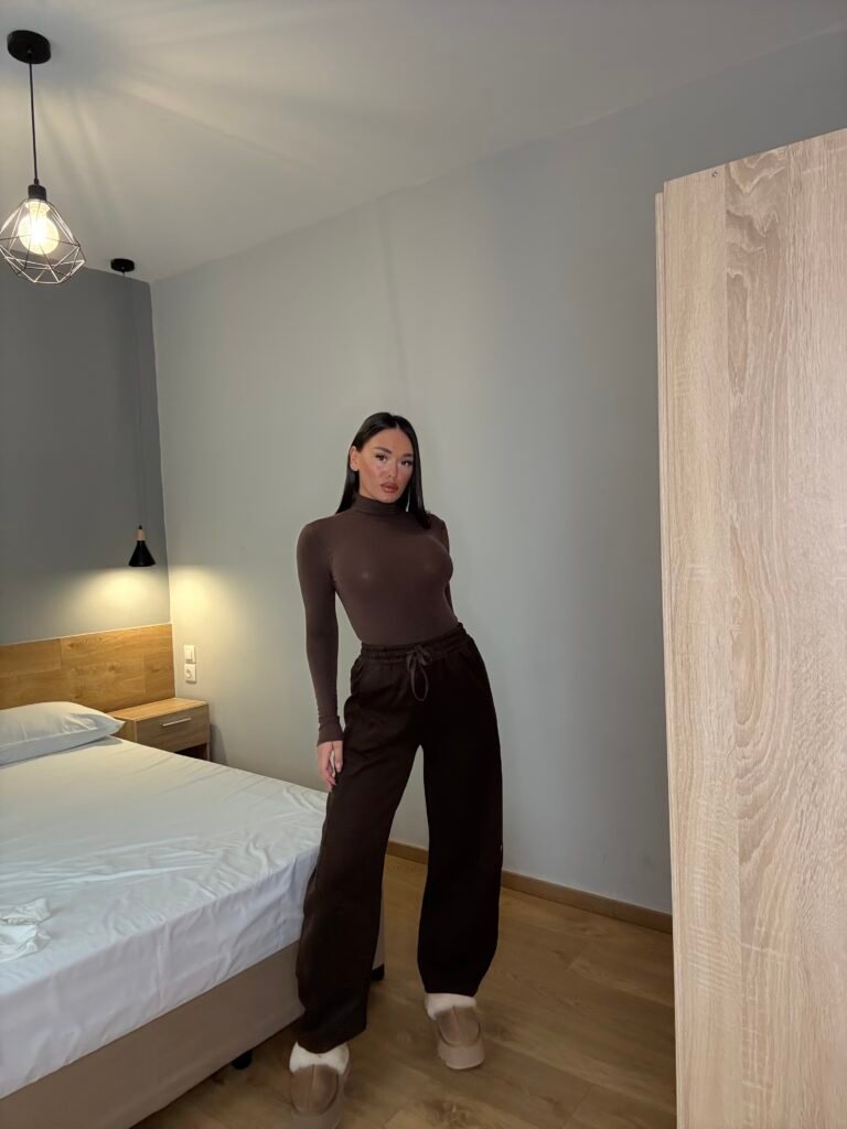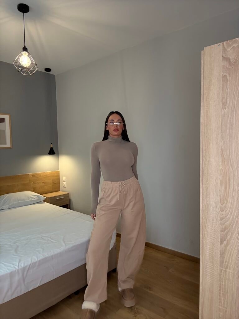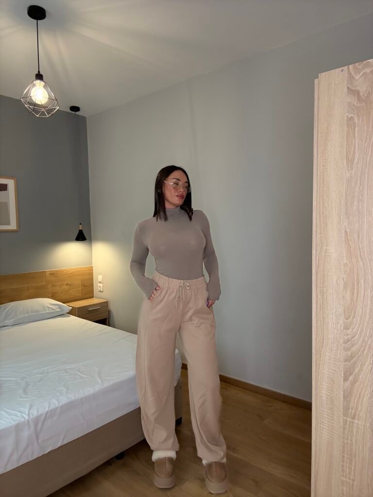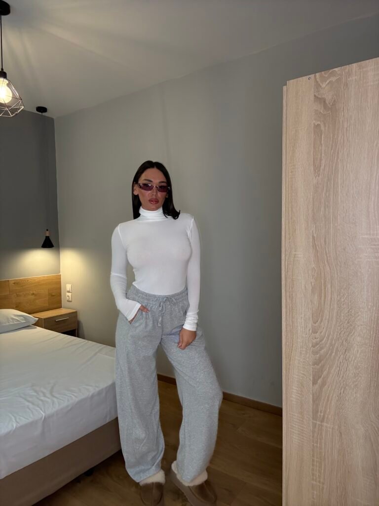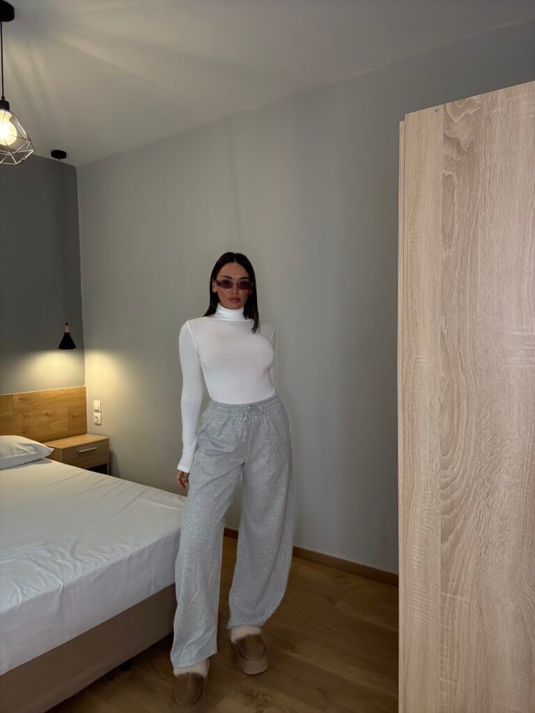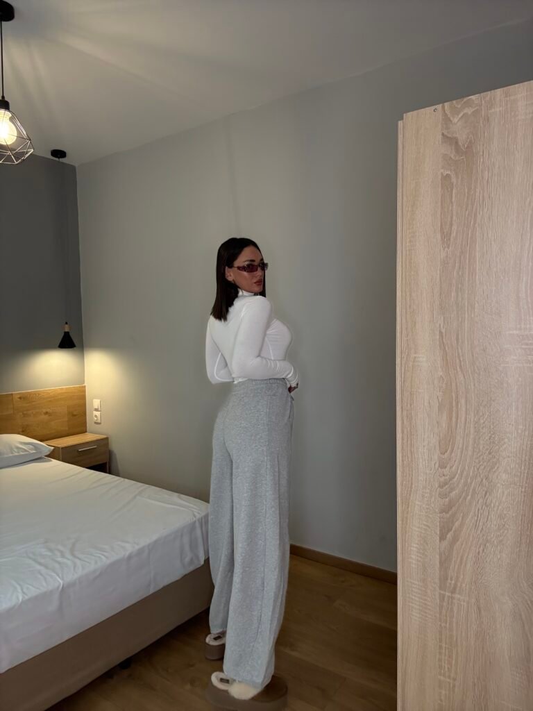 Tuta të gjera me material të butë, të punuara nga pëlhurë e trashë me përbërje cilësore për ngrohtësi dhe qëndrueshmëri. Kanë bel elastik me rrip rregullues dhe xhepa anësorë funksionalë. Ideale për përditshmëri, udhëtime apo pushim, duke kombinuar komoditetin me një stil të pastër e modern.