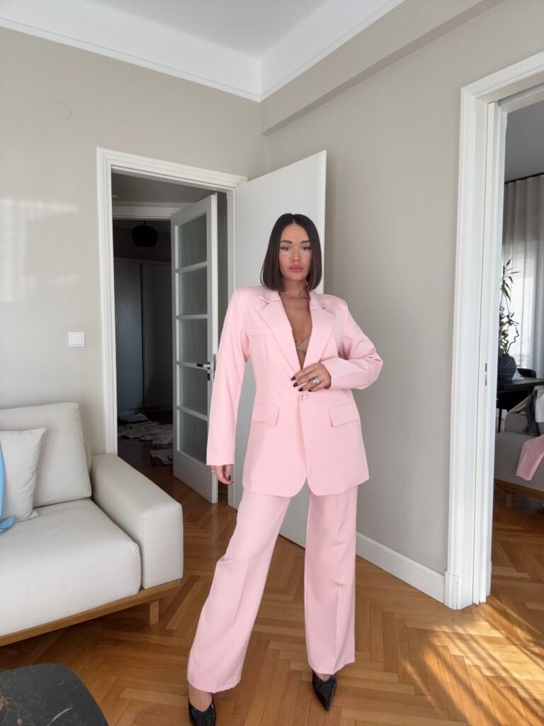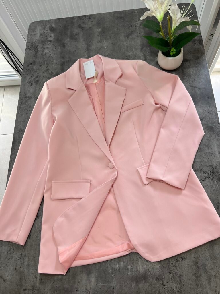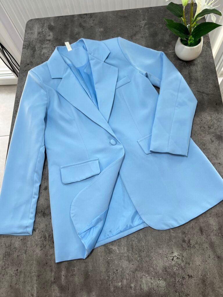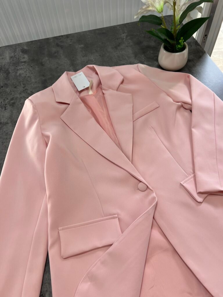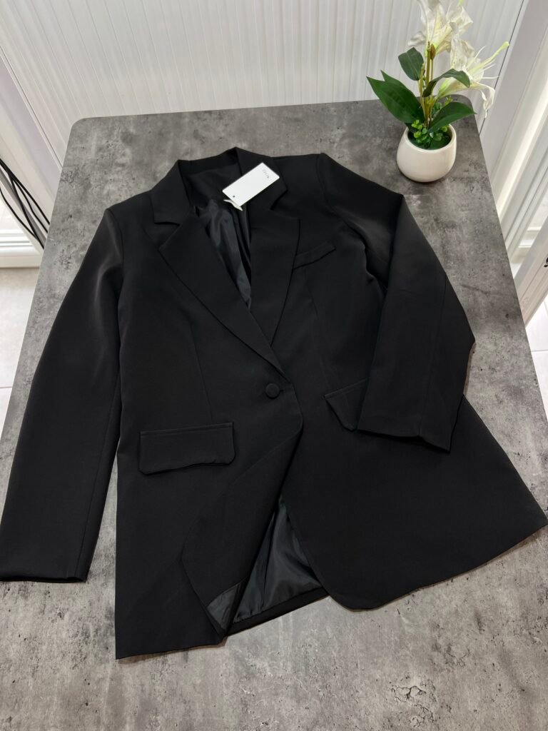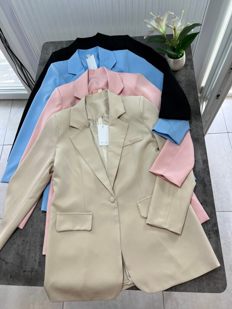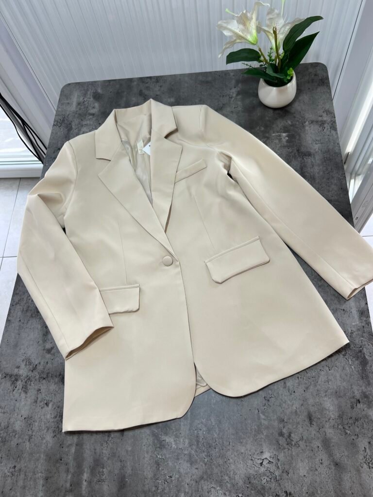 Me mënge të gjata, vjen në gjatësi poshtë vitheve, në prerje të drejtë. Mbërthim me kopse. Me astar brënda. Përmban kapake figurante xhepash.