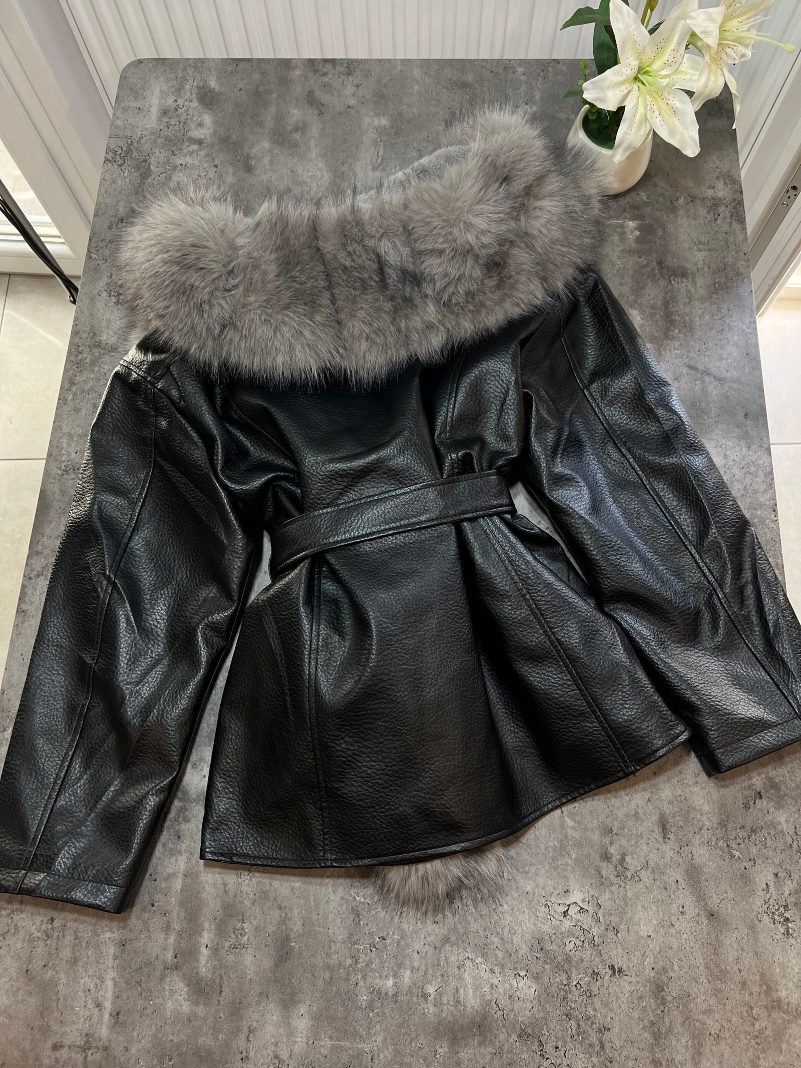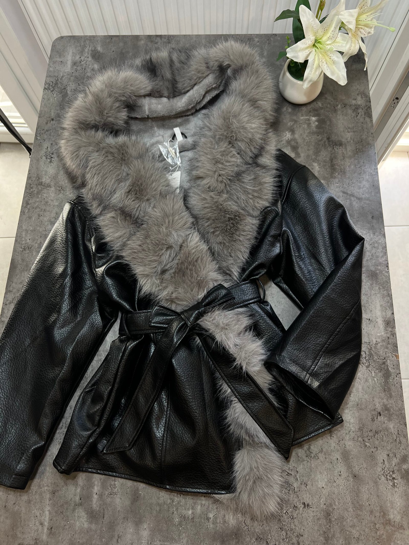 Xhaketë me dizajn modern dhe jakë luksoze me pellush të butë për një pamje elegante dhe të ngrohtë. Materiali me efekt lëkure kombinon stilin urban me ndjesinë e rehatshme, ndërsa rripi në bel thekson linjat femërore. Një veshje perfekte për ditët e ftohta që tërheq vëmendje me çdo detaj.