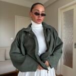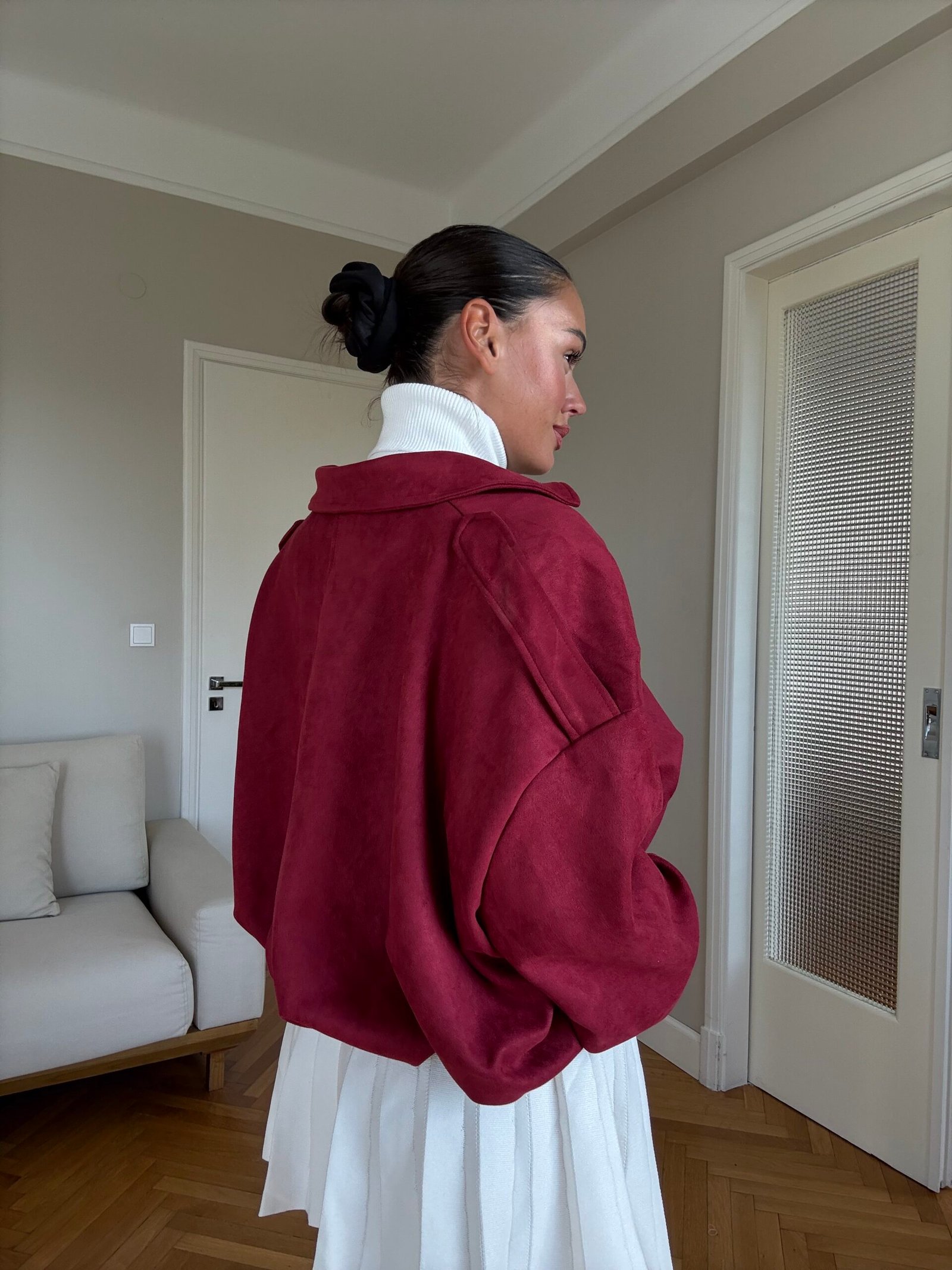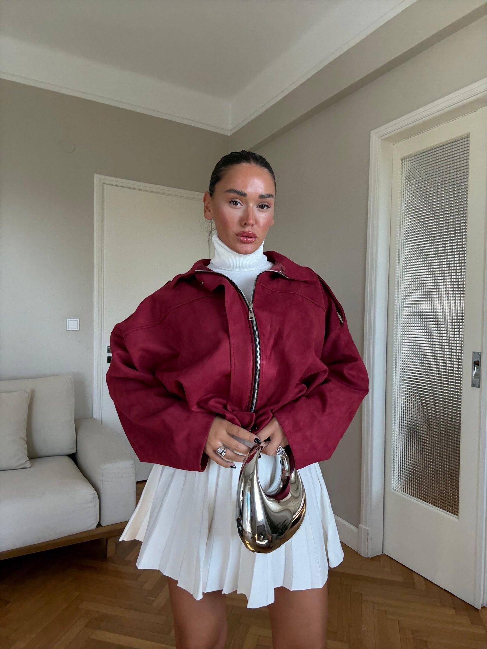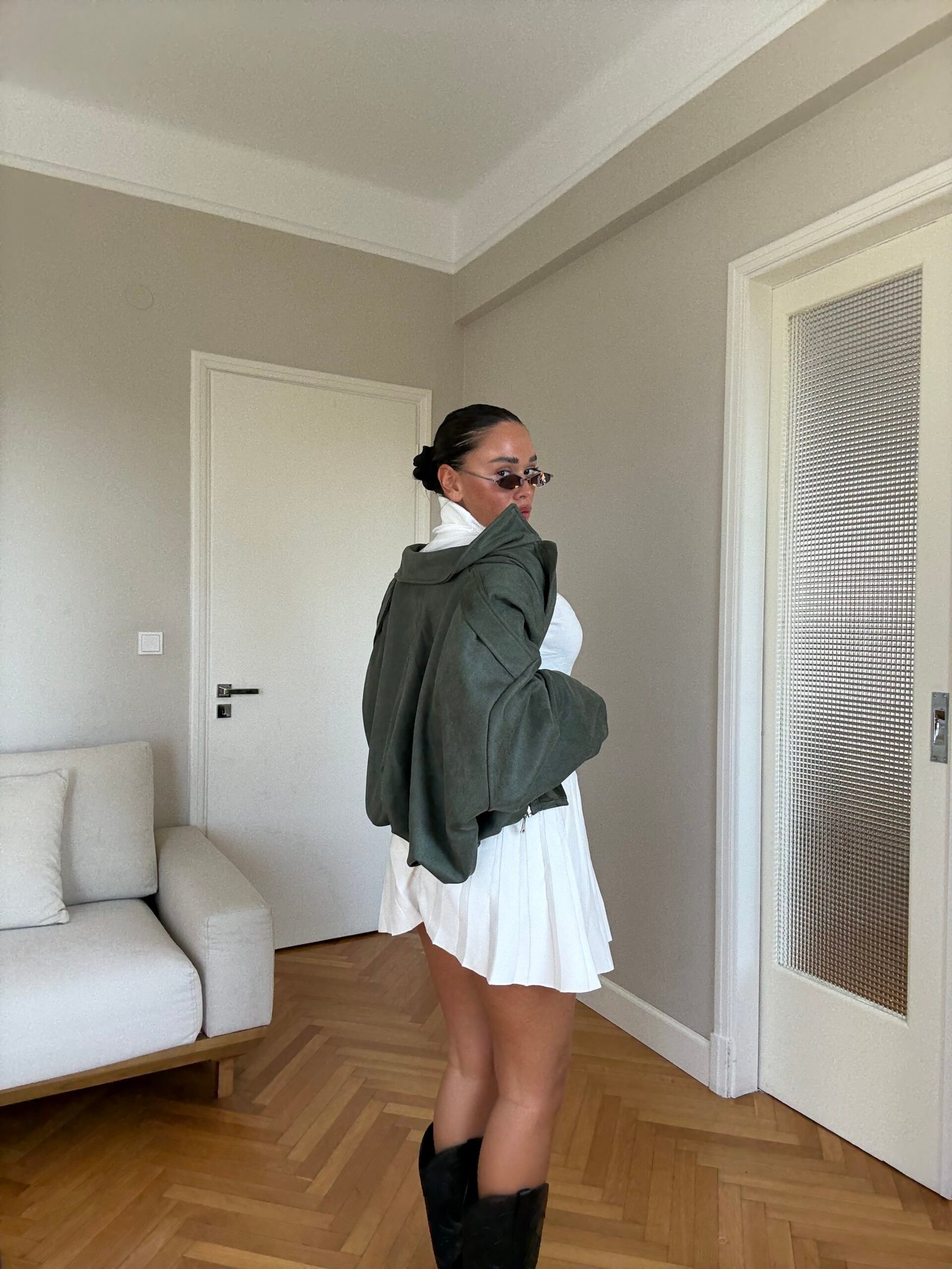 Kjo xhaketë oversize në material suede look është zgjedhja perfekte për një look modern dhe të rehatshëm. Prerja e lirshme dhe mbyllja me zinxhir i japin stil urban dhe chic. Ideale për vjeshtë-dimër për një pamje minimaliste dhe elegante..