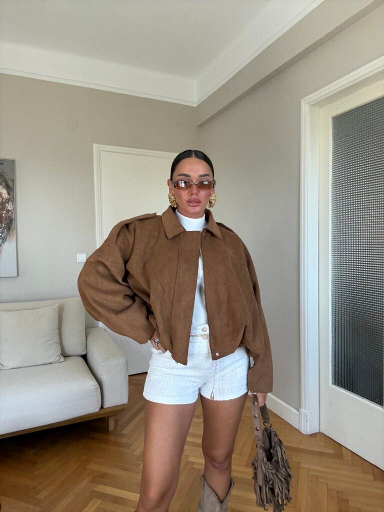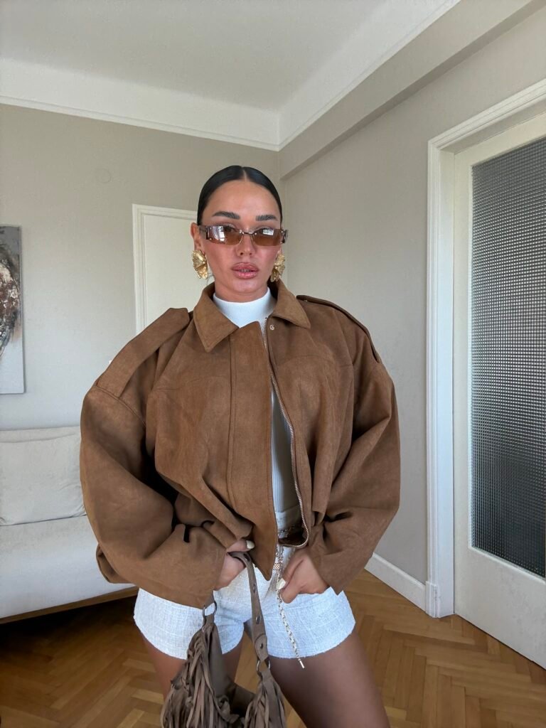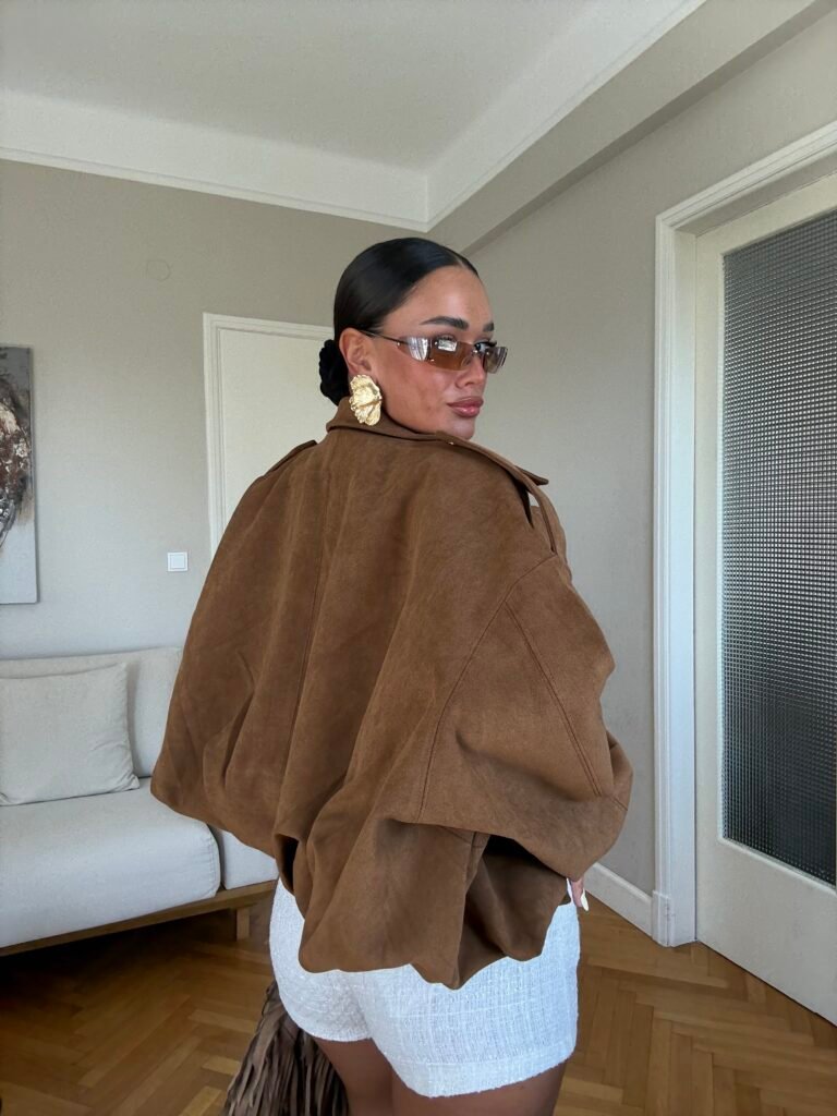 Xhaketë suede me dizajn oversize dhe mbyllje me zinxhir, e punuar nga material i butë që ofron rehati dhe stil. Siluetë moderne dhe e lirshme, perfekte për një pamje urbane me karakter. Një veshje statement që qëndron në trend dhe kombinon elegancën me prakticitetin.