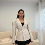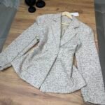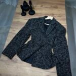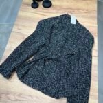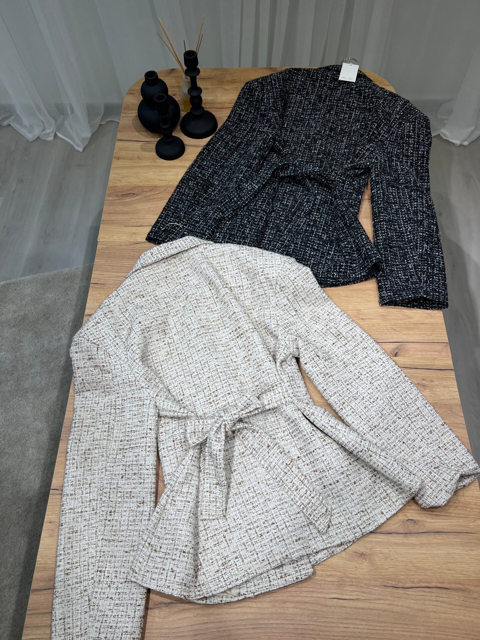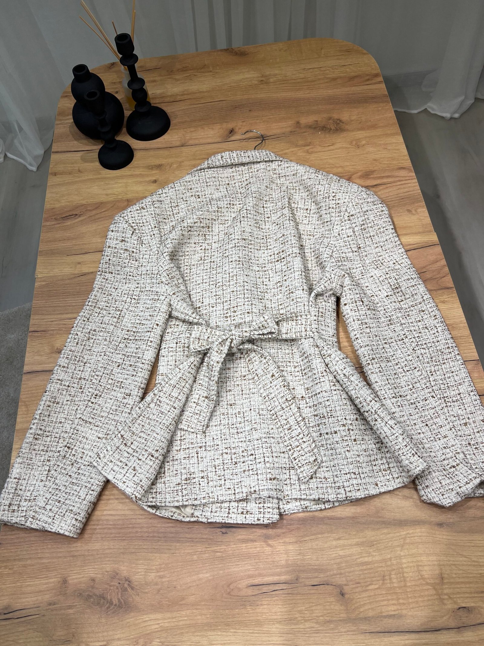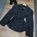 Xhaketë elegante në material tweed me teksturë klasike dhe rrip në bel për theksim të siluetës. Prerje feminine, stil smart chic dhe e përshtatshme për zyrë, evente apo kombinime casual elegante. Një model timeless që i jep look-ut strukturë dhe sofistikim.