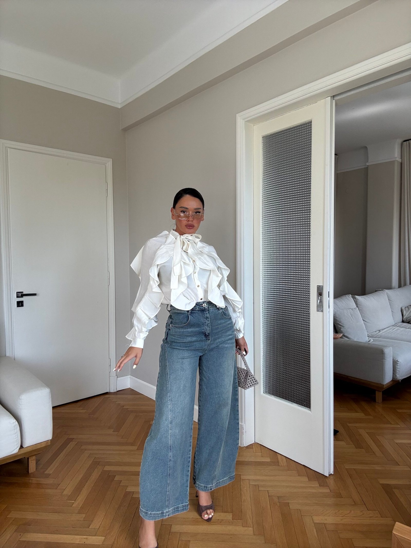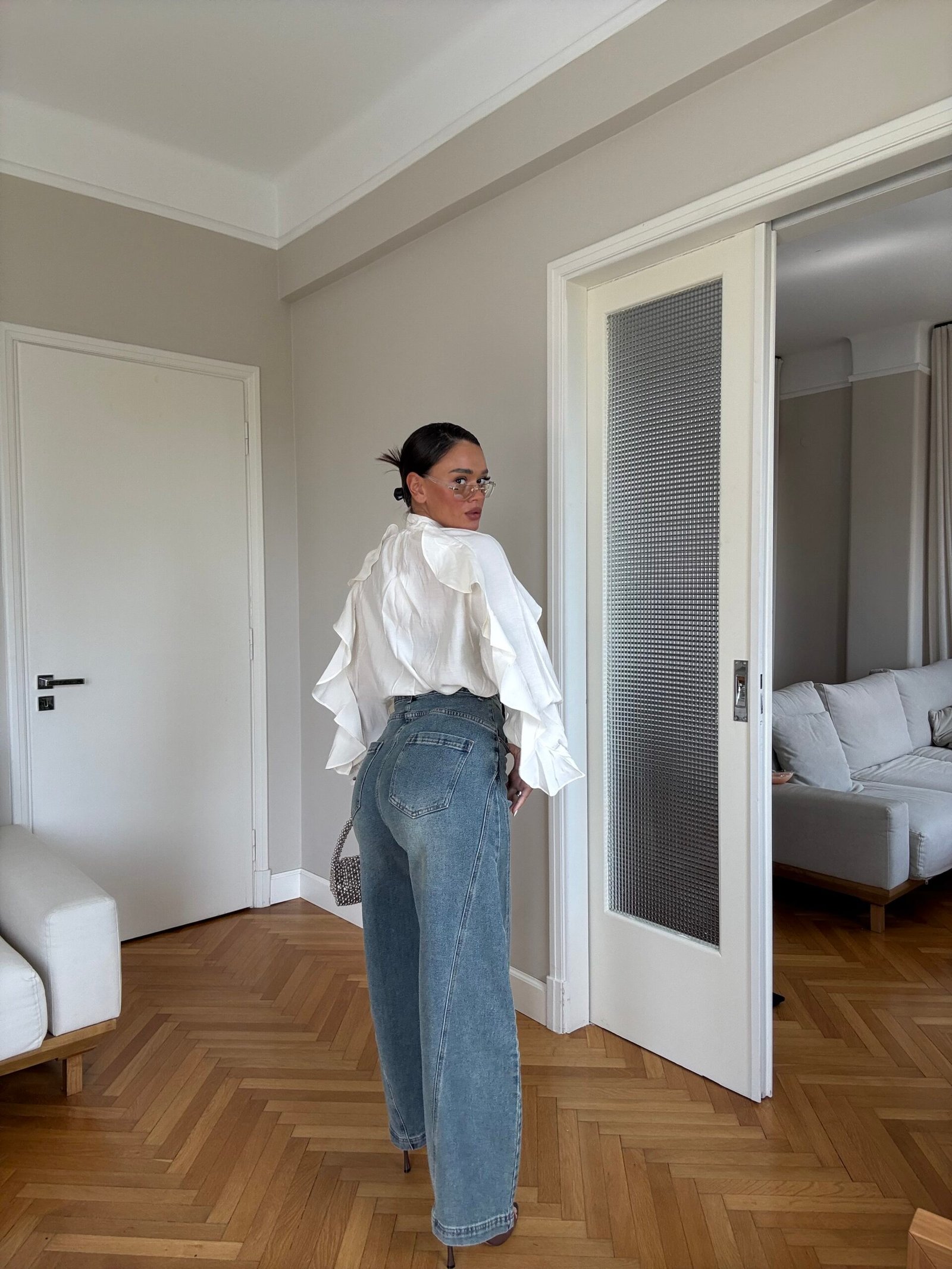 Këto xhinse me prerje të gjerë dhe bel të lartë janë një zgjedhje perfekte për një pamje të rehatshme, por gjithmonë në trend. Materiali denim cilësor ofron qëndrueshmëri dhe komoditet, ndërsa linja e drejtë dhe e lirshme krijon një siluetë elegante që i përshtatet çdo tipi trupi.