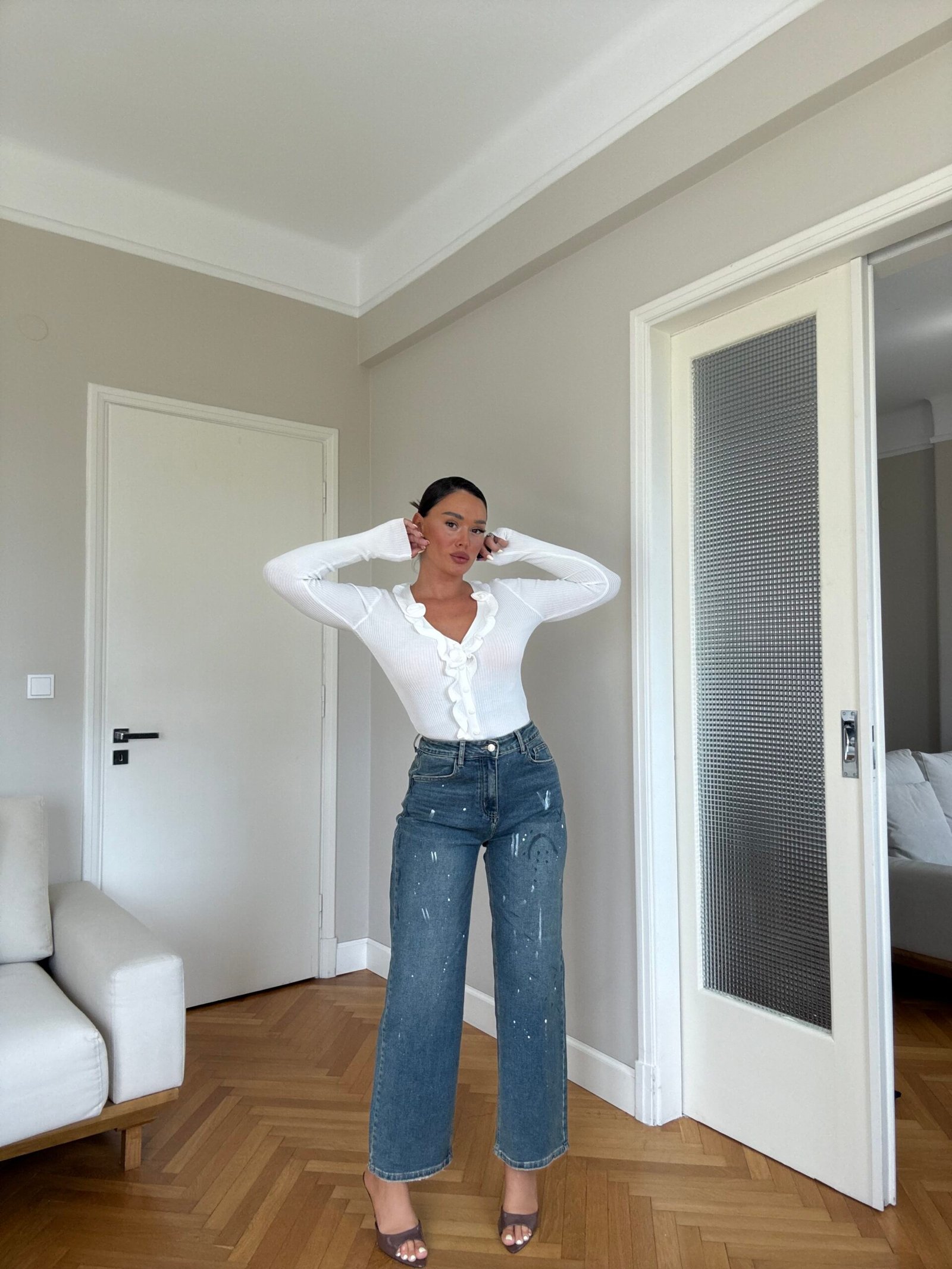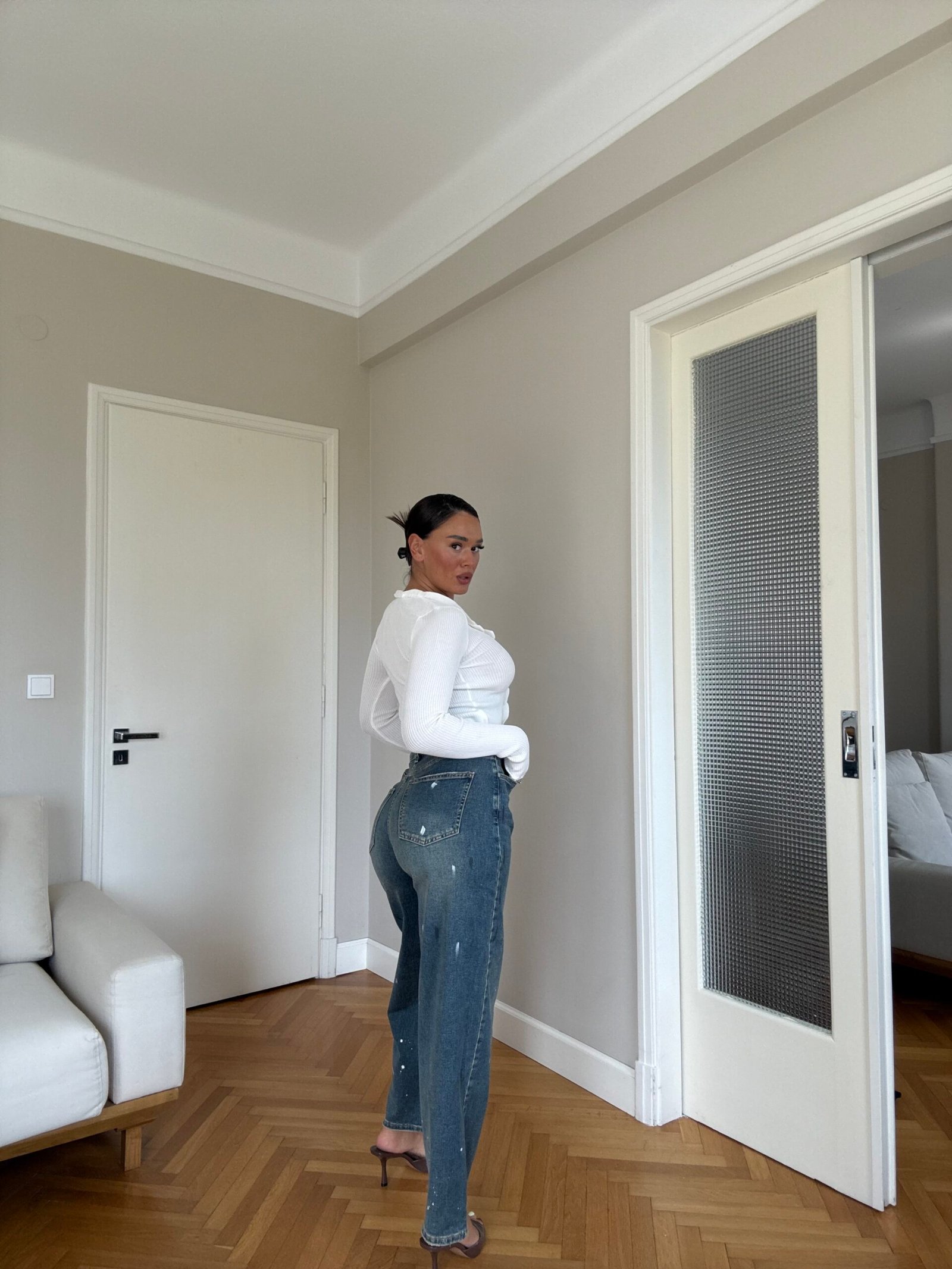 Këto xhinse moderne me prerje të drejtë dhe elasticitet sjellin një pamje urbane dhe trendy, ideale për stilin casual të përditshëm. Të realizuara me denim cilësor, ofrojnë komoditet dhe rezistencë, ndërsa efekti “paint splatter” i bardhë i jep një prekje unike dhe kreative.