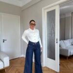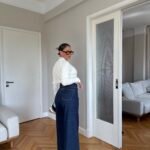 Xhinse wide leg elastike, në ngjyrë indigo dark, të zbukuruara me efekt unik speckled (pikëza xixash minimaliste dekorative). Model me bel të lartë, këmbë të gjera dhe prerje të lirshme që ofron rehati dhe pamje moderne.