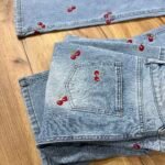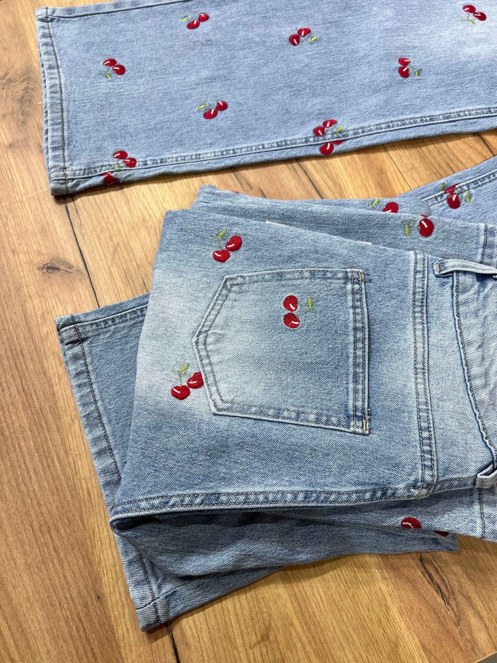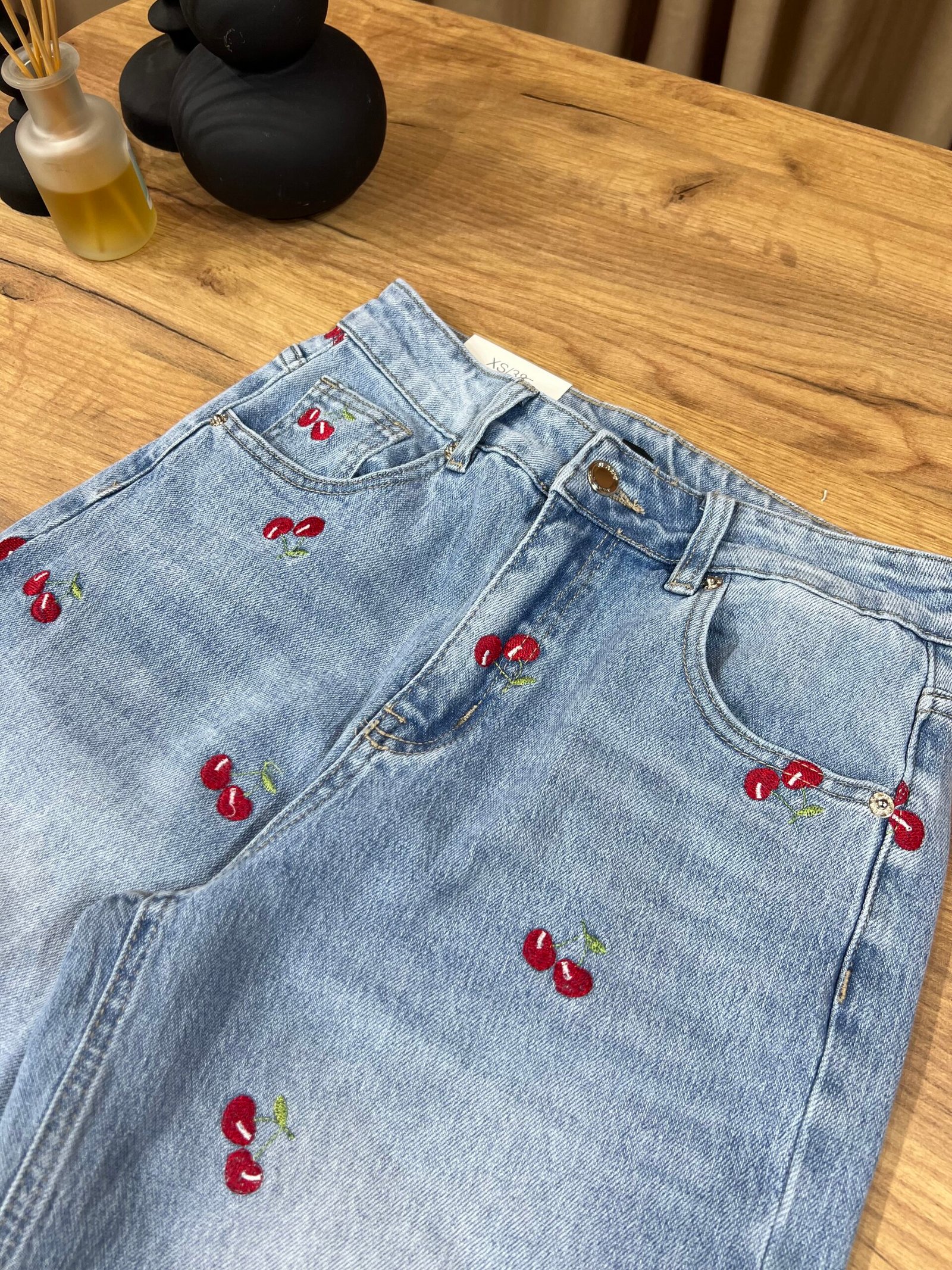 Xhinse wide leg me bel të lartë në nuancë light vintage wash, të dekoruara me qëndisje qershie për një look playful dhe veror. Prerje e gjerë që zgjat siluetën dhe krijon stil modern me frymë Y2K & 90’s.